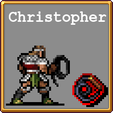 Christopher starts with +20 MaxHealth, +1 Armor, +1 Revival, and +5 Banish.