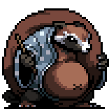 - This is a reference to Japanese myths revolving around the tanuki, which are commonly portrayed as having oversized testicles which may be carried slung over their shoulder, just as depicted in McCoy-Oni's character art.