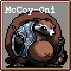 McCoy-Oni is one of the playable characters from the Legacy of the Moonspell DLC of Vampire Survivors. His starting weapon is 108 Bocce.